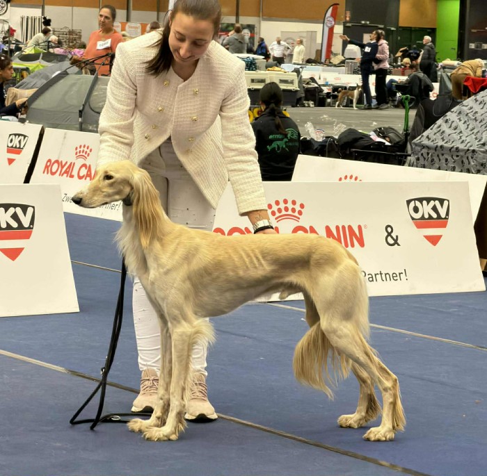 Dátum narodenia /Date of birth: 24.3.2024 Otec /Father: Ch. Jidda the Panhandler Matka /Mother: Ch. Showhuters Baha Kahana m/o: Ute Lennartz + Nina Neswadba, D